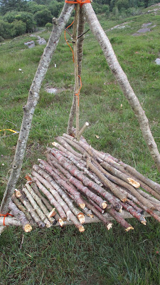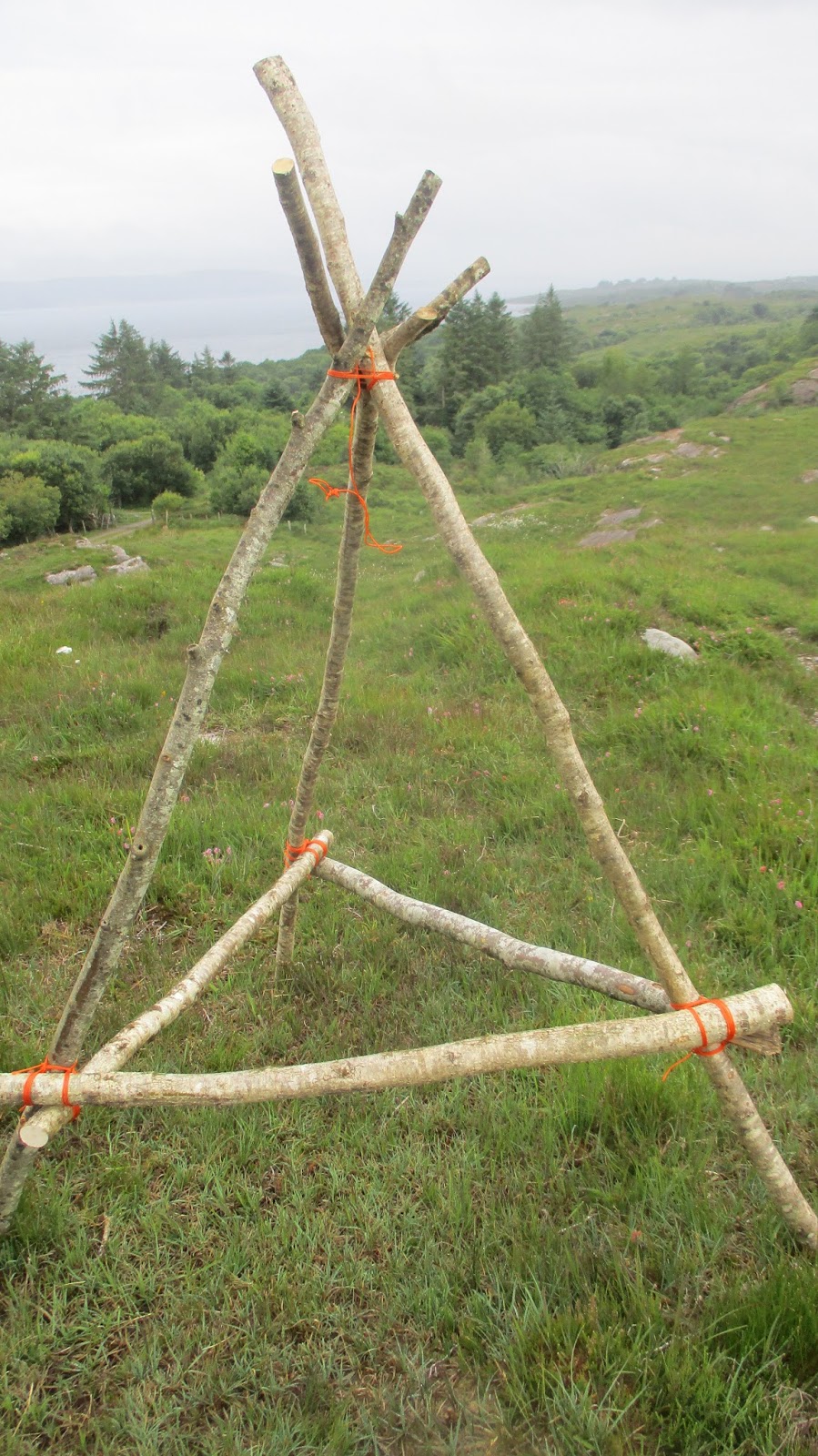 Build a tripod, with three horizontal lats near the base, which will form the floor foundation.